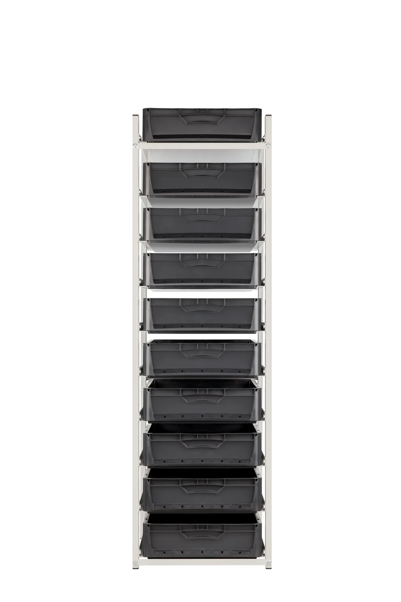 Regał pomieści aż 10 pojemników, a jego kompaktowe wymiary pozwalają na łatwe dopasowanie do mniejszych przestrzeni. Wyposażony w możliwość łatwego montażu, zapewnia komfort oraz oszczędność czasu. Czarny kolor nie tylko nadaje mu nowoczesny wygląd, ale także sprawia, że pasuje do najróżniejszych aranżacji wnętrz. Wybierz regał do pojemników 600x400x120 w kolorze czarnym, aby zyskać nie tylko praktyczne miejsce do przechowywania, ale i stylowy element dekoracyjny.