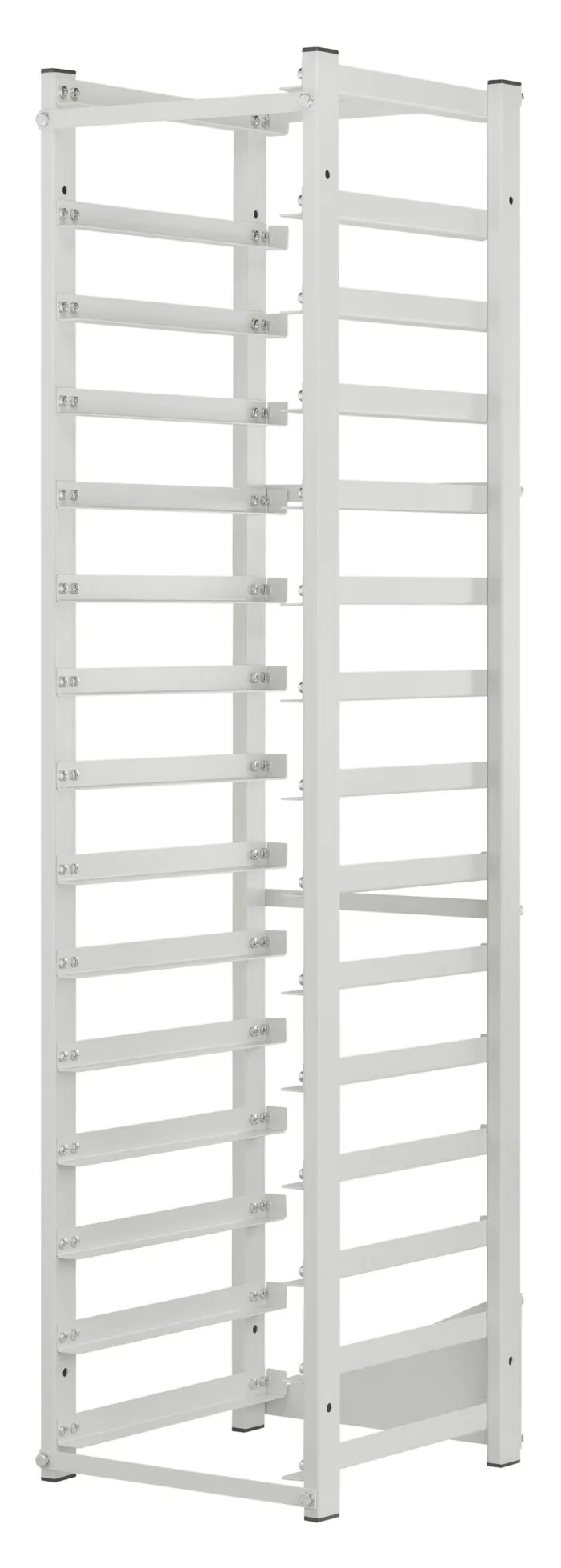 1. Wytrzymała konstrukcja stalowa:Regały wykonane są z mocnych profili stalowych malowanych proszkowo, co zapewnia odporność na korozję, zarysowania oraz uszkodzenia mechaniczne. Taka powłoka gwarantuje długotrwałą estetykę i funkcjonalność nawet w warunkach intensywnego użytkowania.