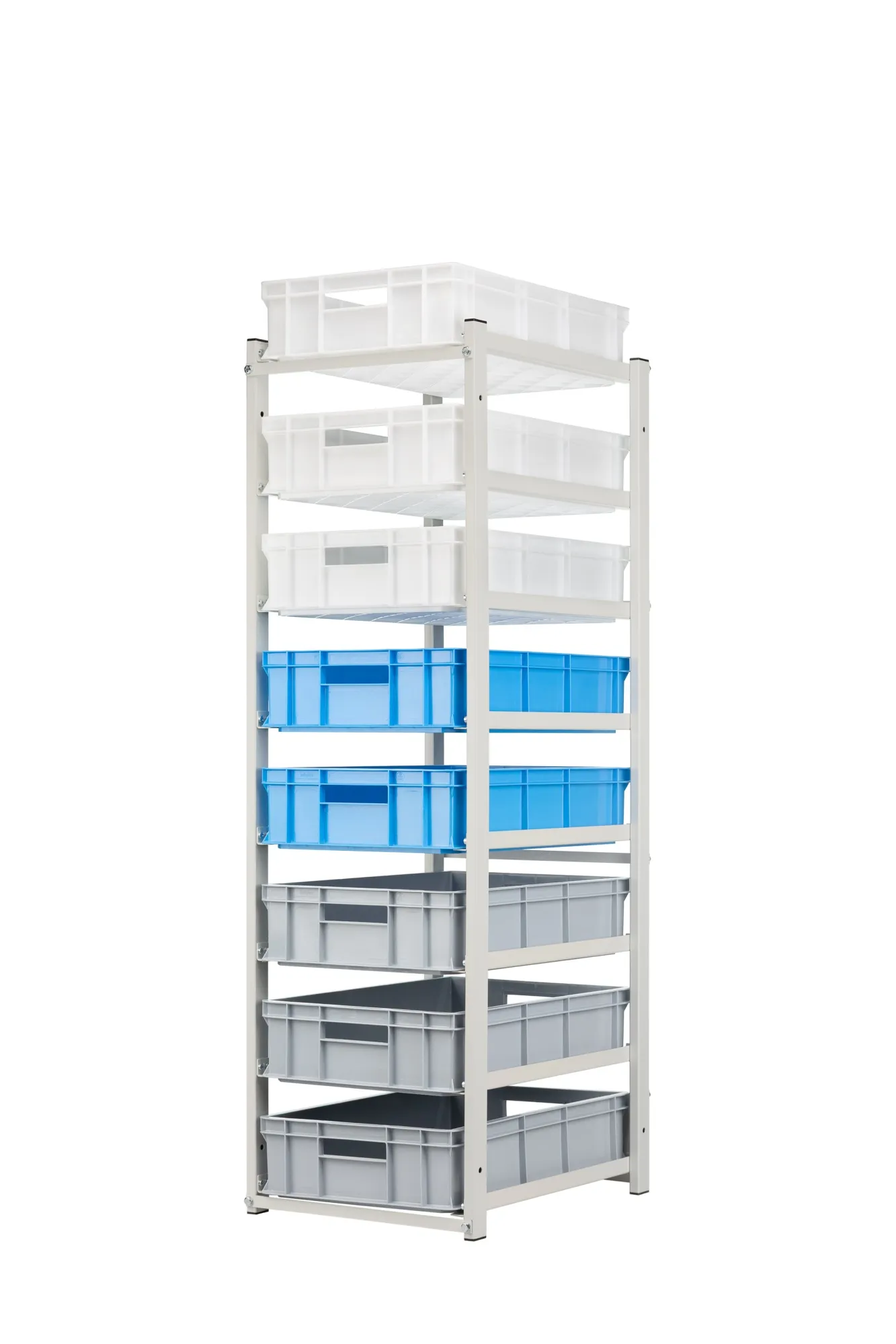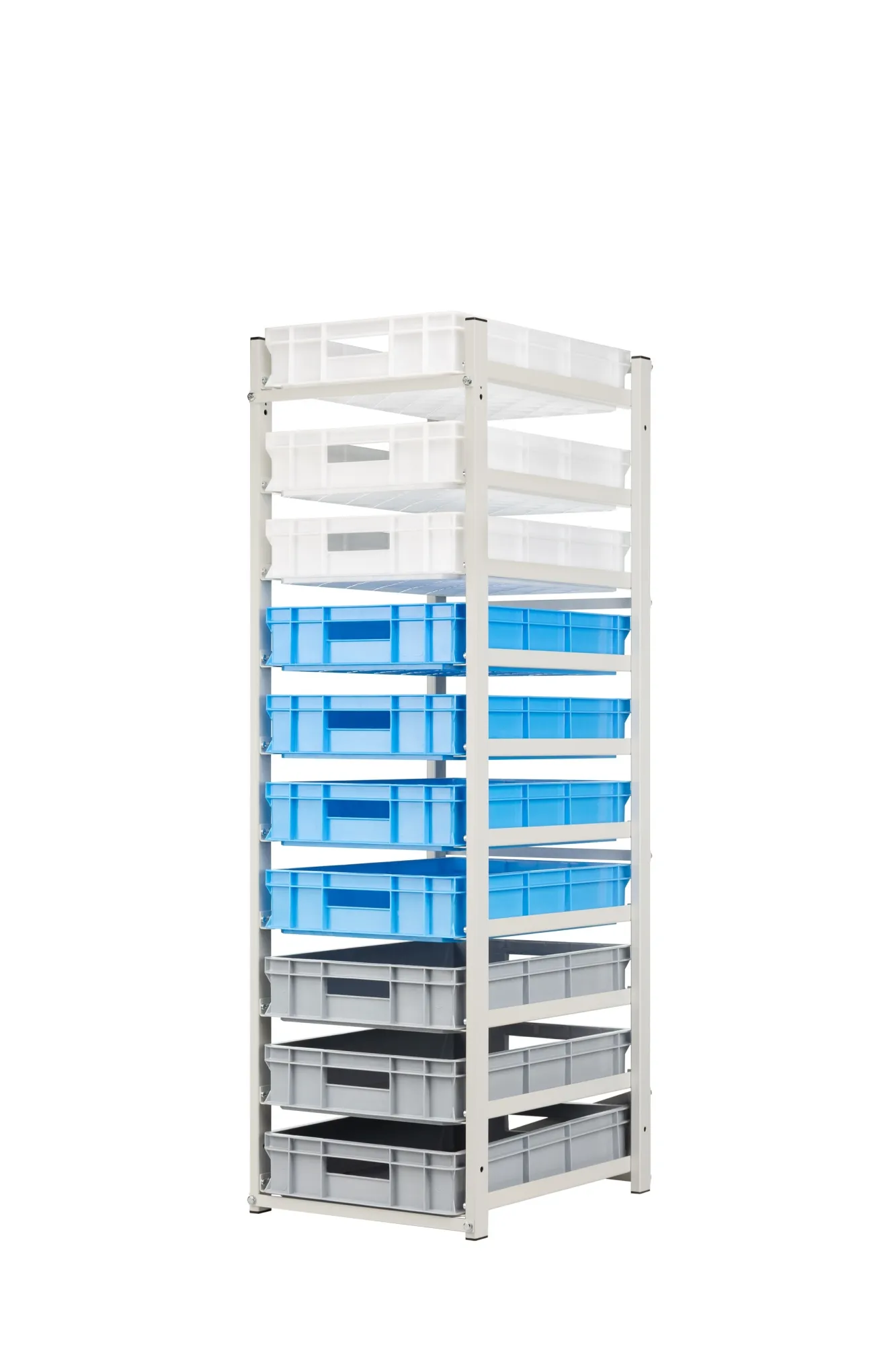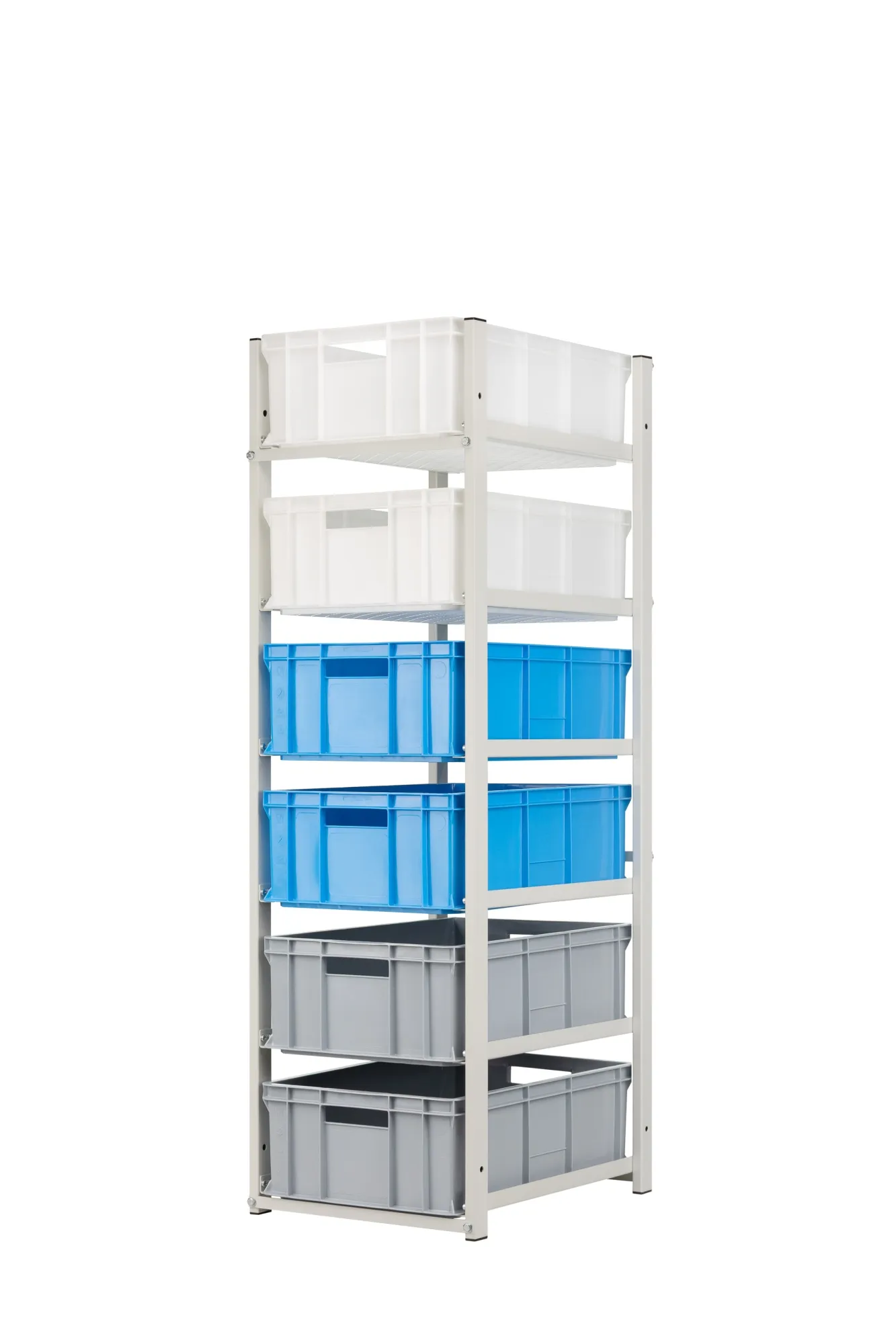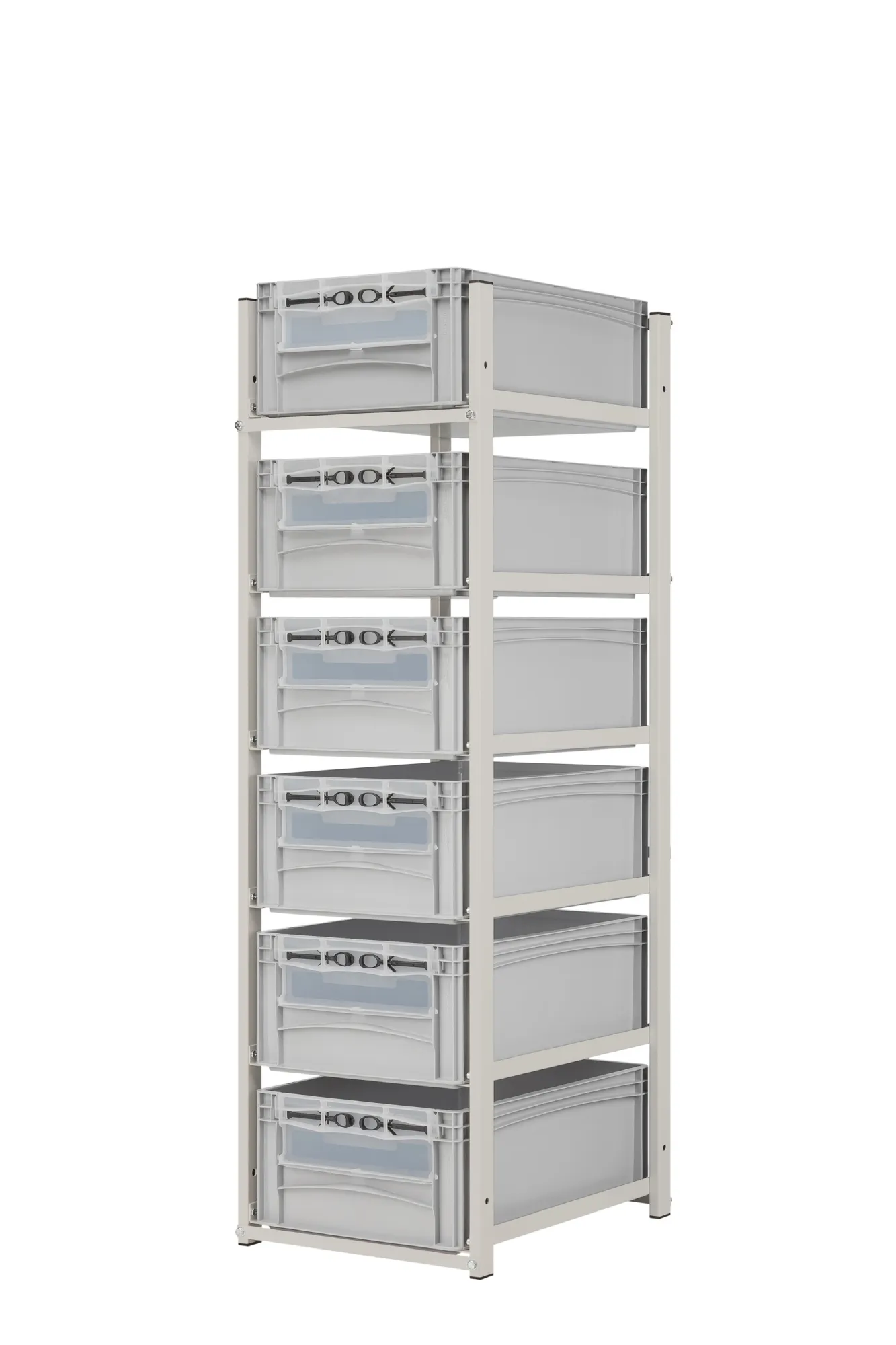 6. Elastyczność rozmiarów:Oferta obejmuje regały z pojemnikami o zróżnicowanej wysokości i pojemności – od modeli kompaktowych dedykowanych drobnym elementom, po większe pojemniki o zwiększonej pojemności, co pozwala dopasować rozwiązanie do rodzaju przechowywanych materiałów.