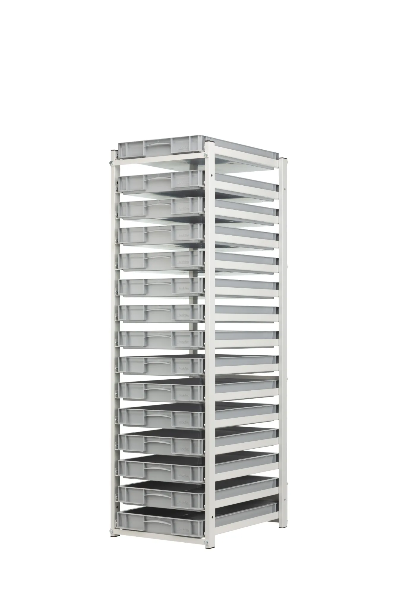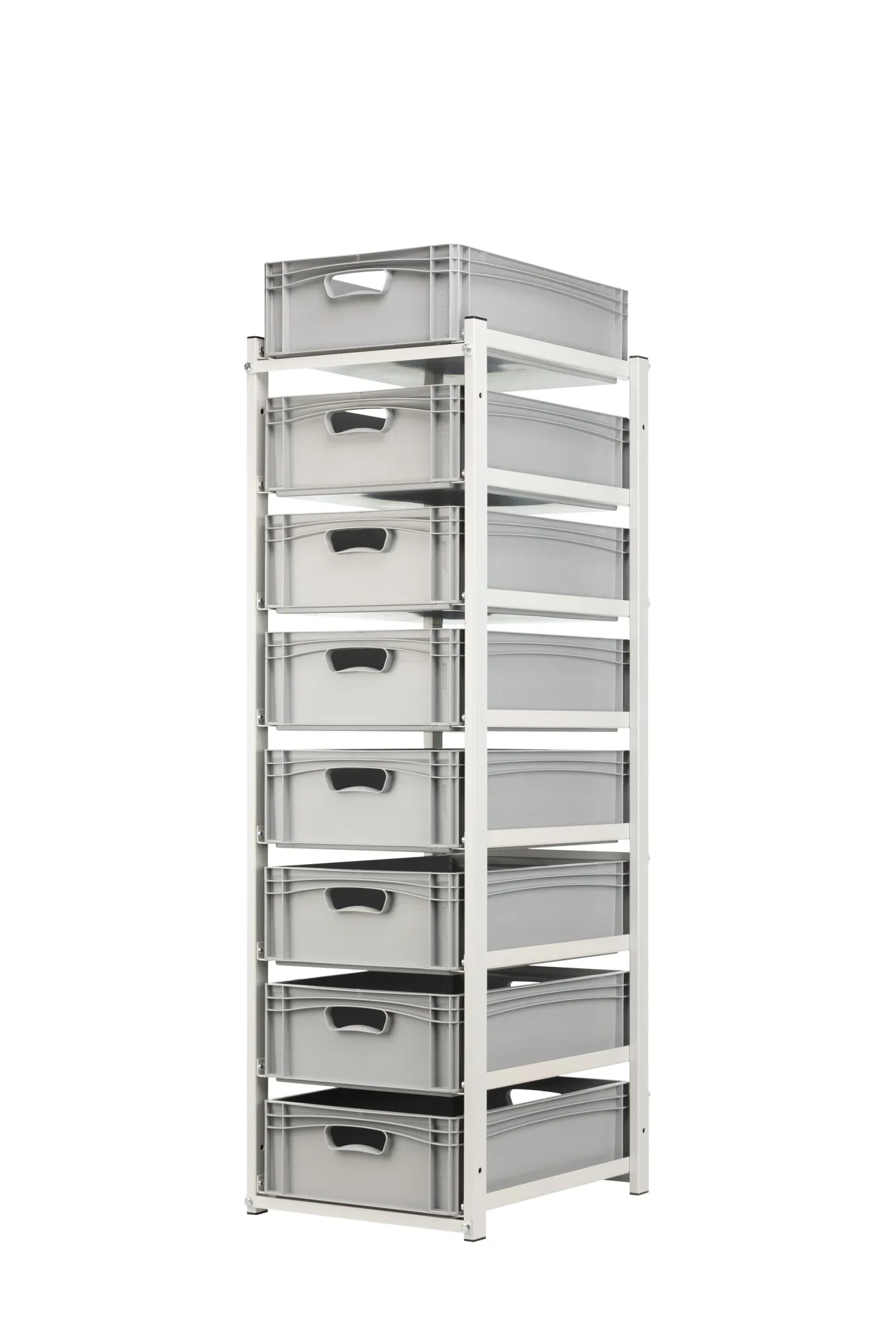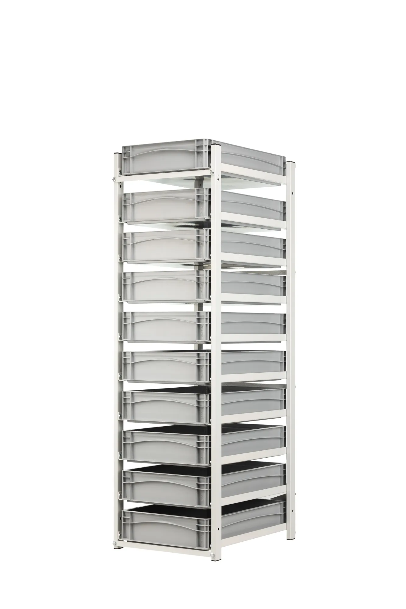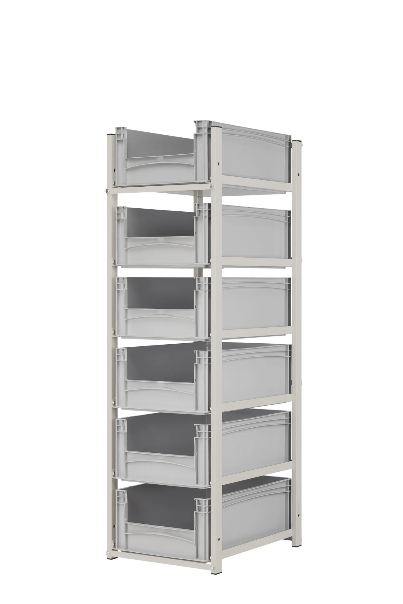 6. Elastyczność rozmiarów:Oferta obejmuje regały z pojemnikami o zróżnicowanej wysokości i pojemności – od modeli kompaktowych dedykowanych drobnym elementom, po większe pojemniki o zwiększonej pojemności, co pozwala dopasować rozwiązanie do rodzaju przechowywanych materiałów.