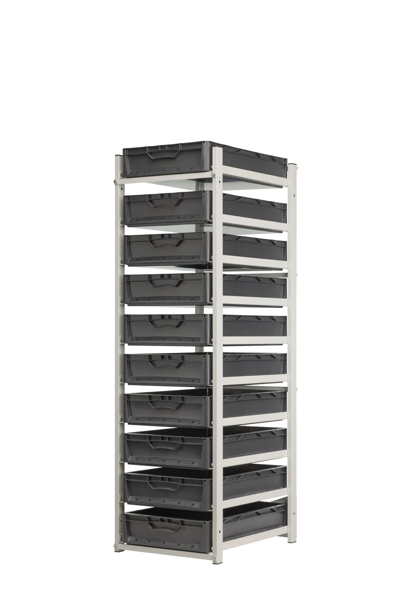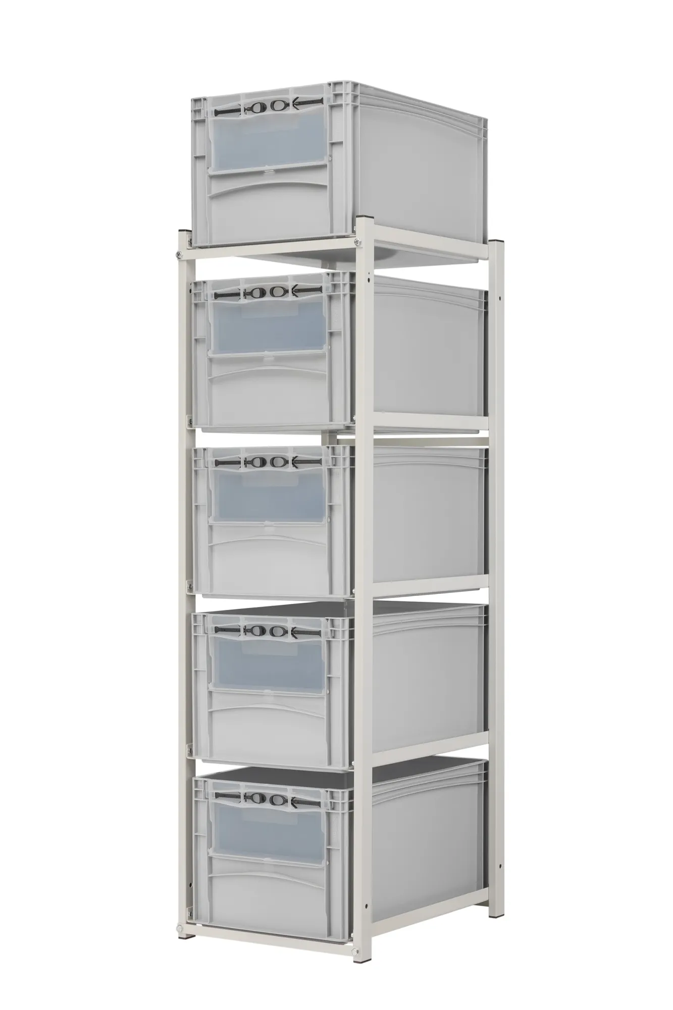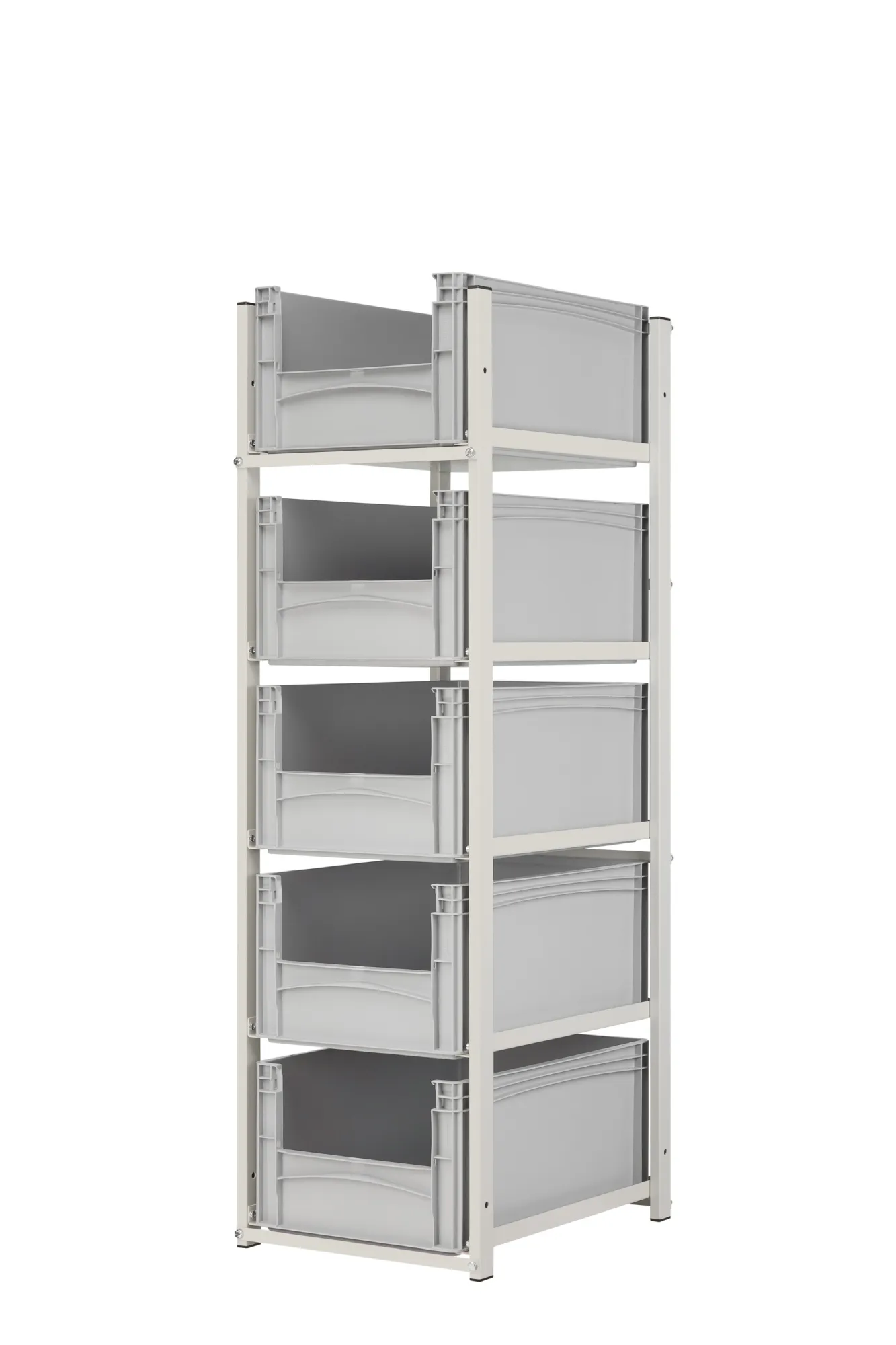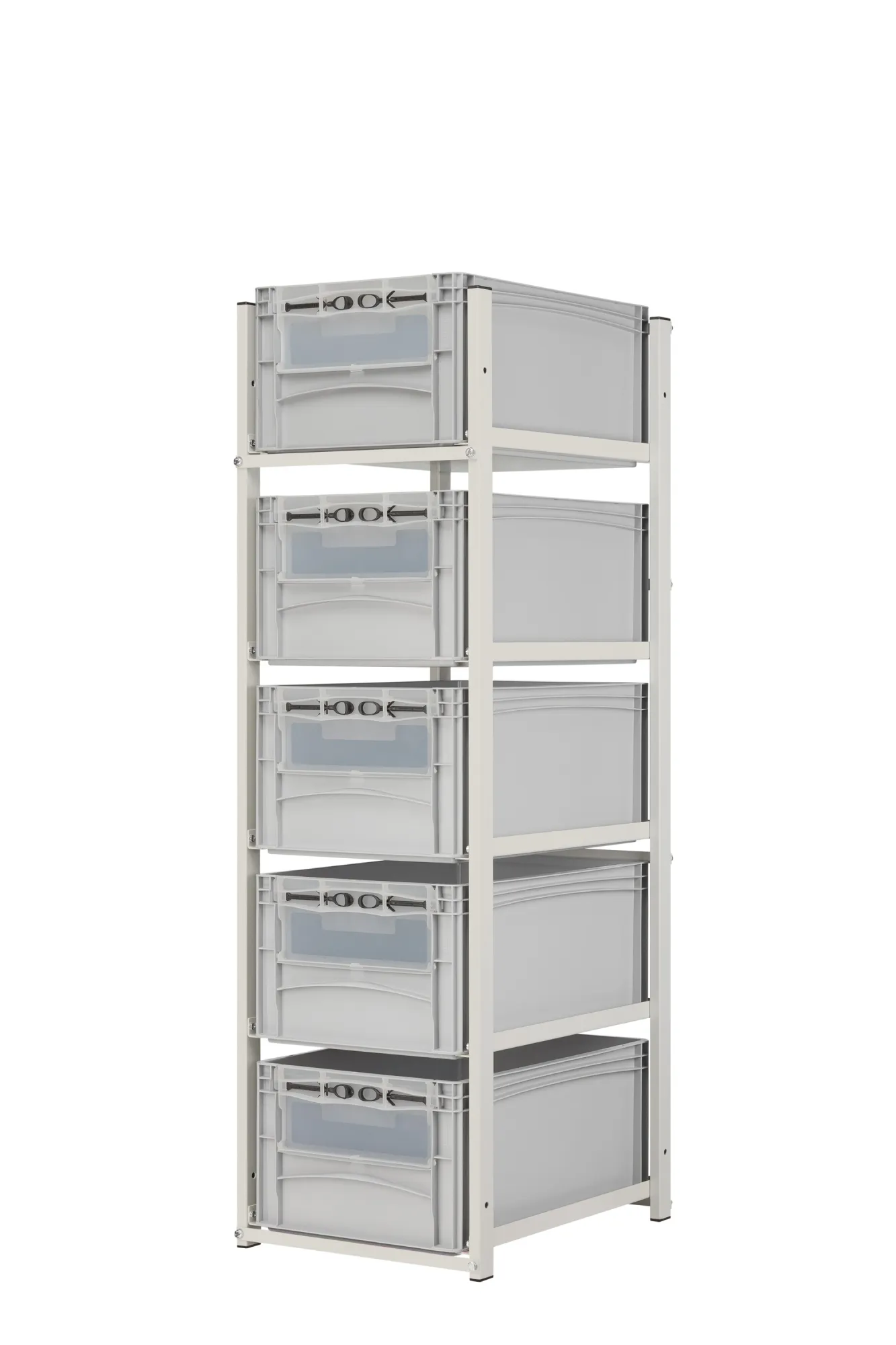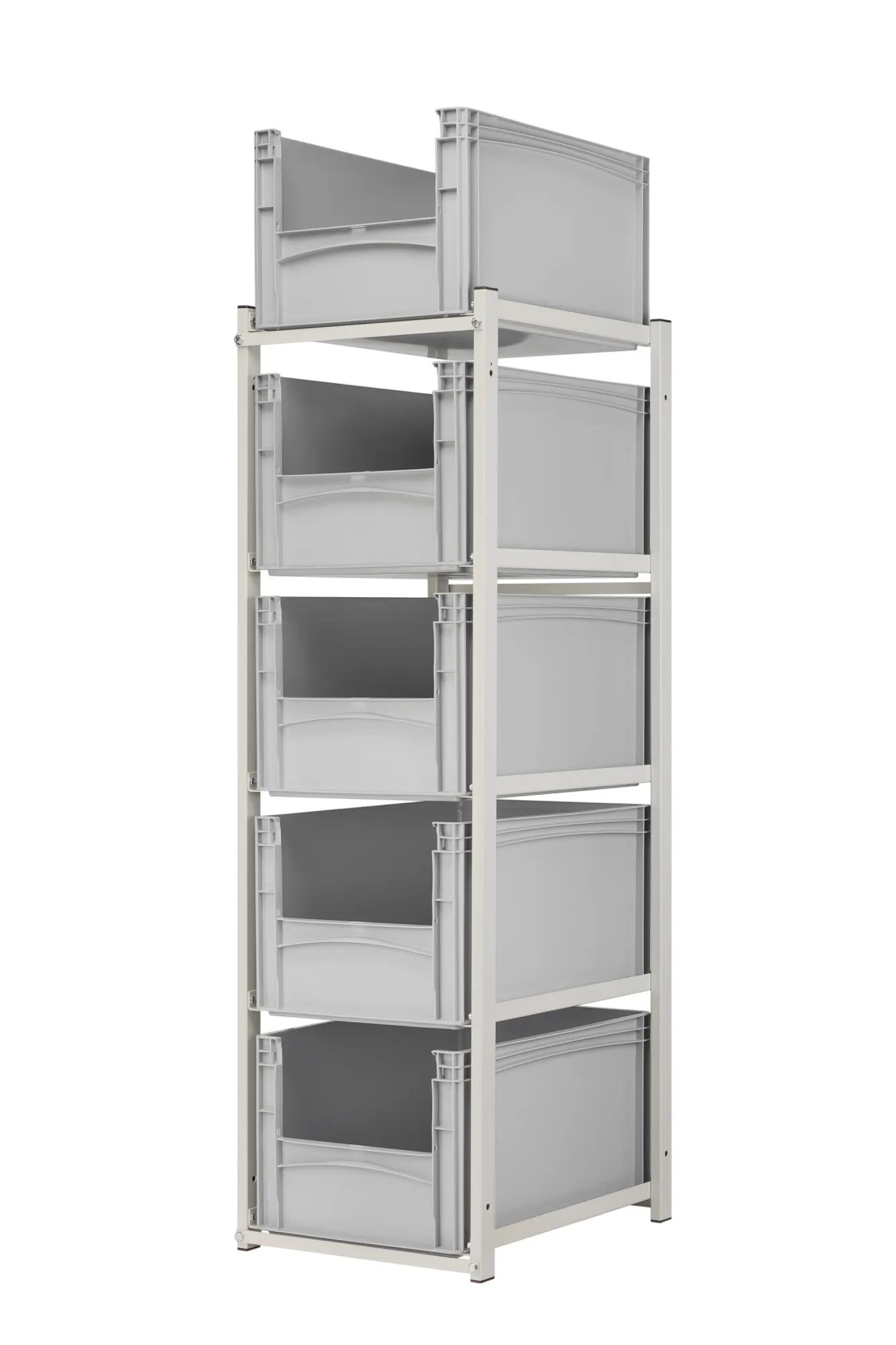 Regały z pojemnikami 600×400 – profesjonalne systemy organizacji przestrzeni magazynowej i warsztatowej od Q-BOX