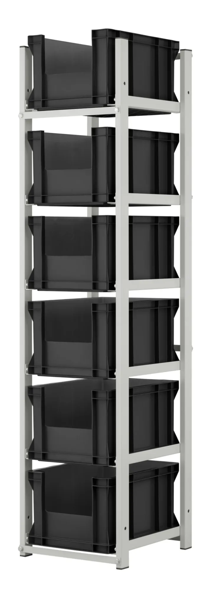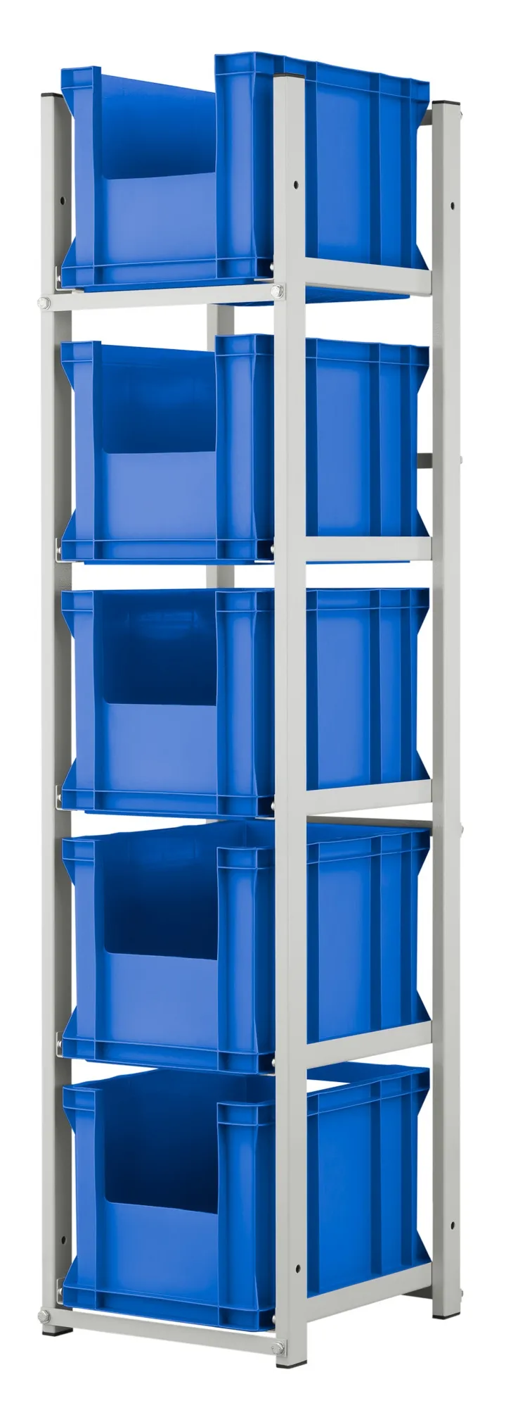 Nasze metalowe regały malowane proszkowo zapewniają odporność na uszkodzenia mechaniczne, korozję oraz intensywne użytkowanie. Każdy regał jest wyposażony w wytrzymałe pojemniki plastikowe o wymiarach 400x300 mm, które umożliwiają segregację i łatwy dostęp do przechowywanych elementów.