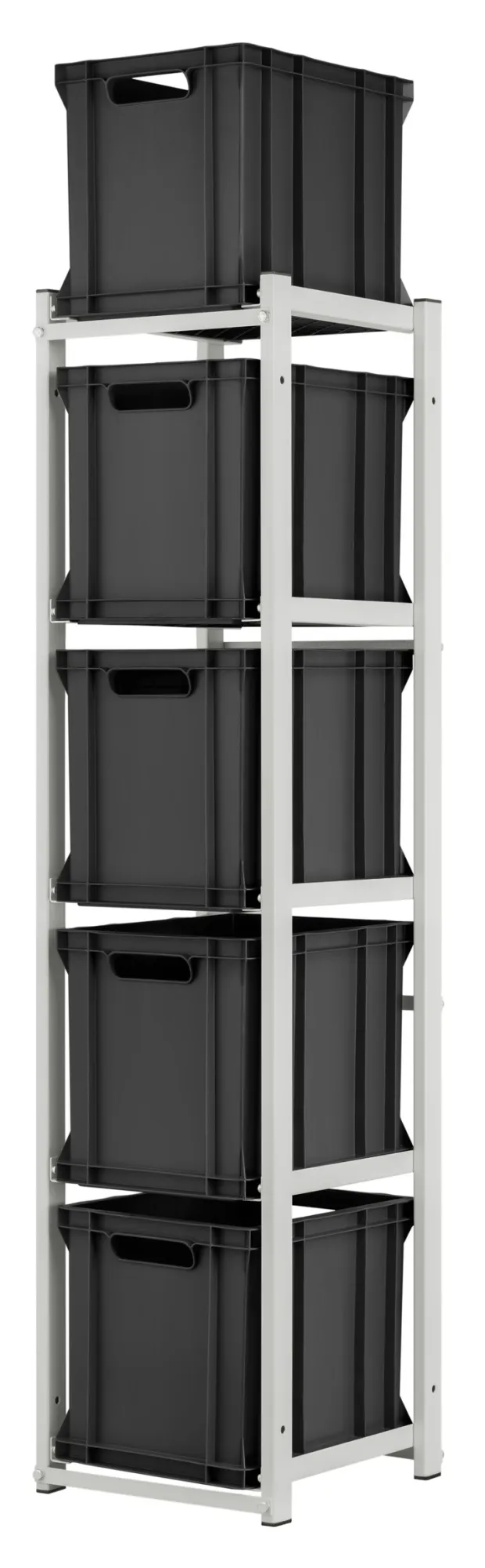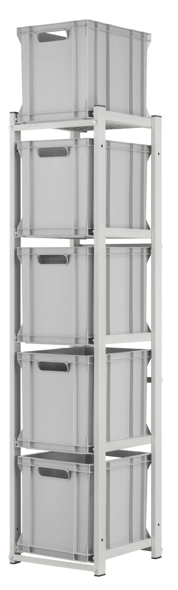 📌 Wymiar regału z pojemnikami: szer. 37 cm / gł. 41 cm / wys. od 155 do 180 cm